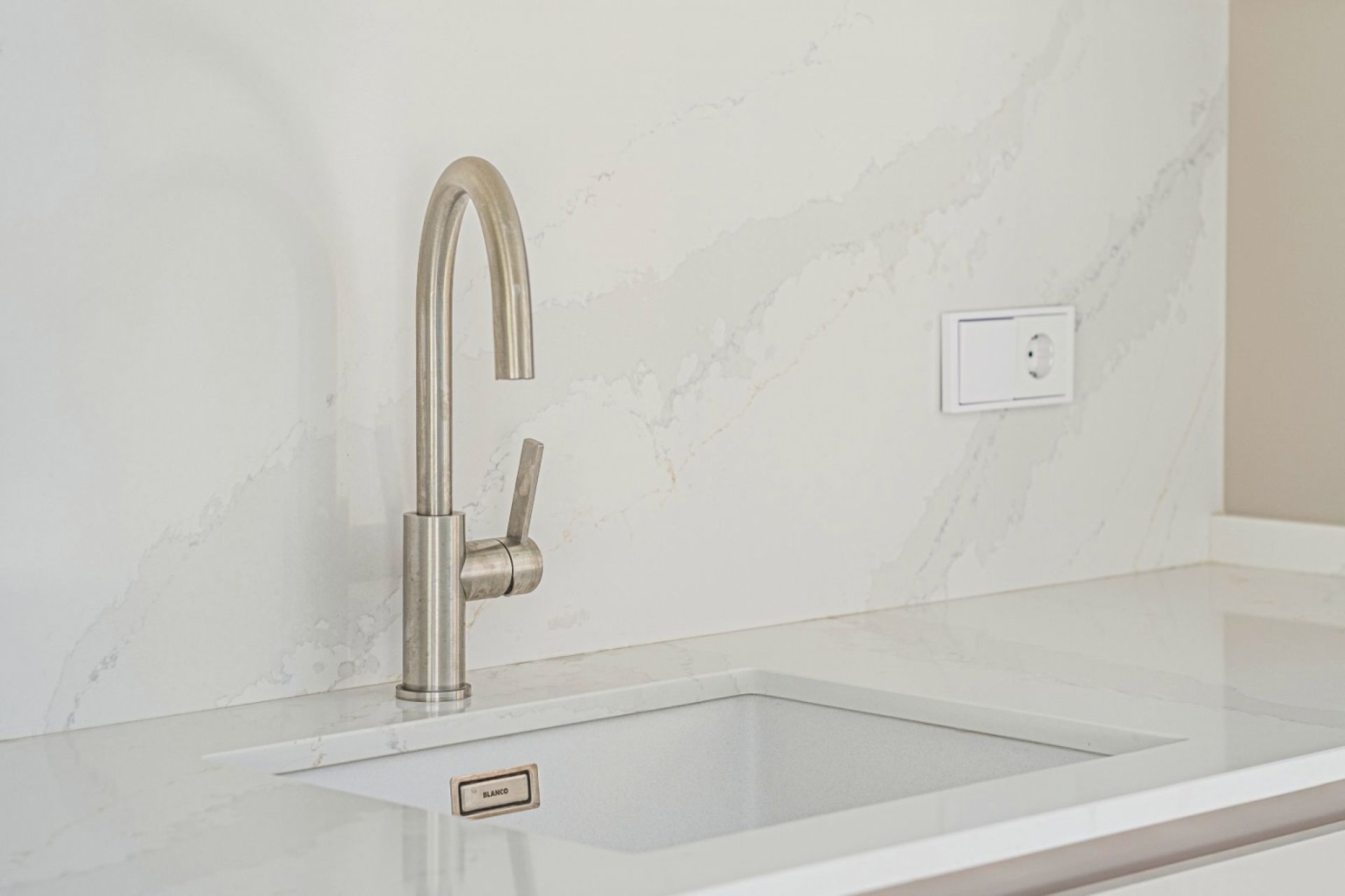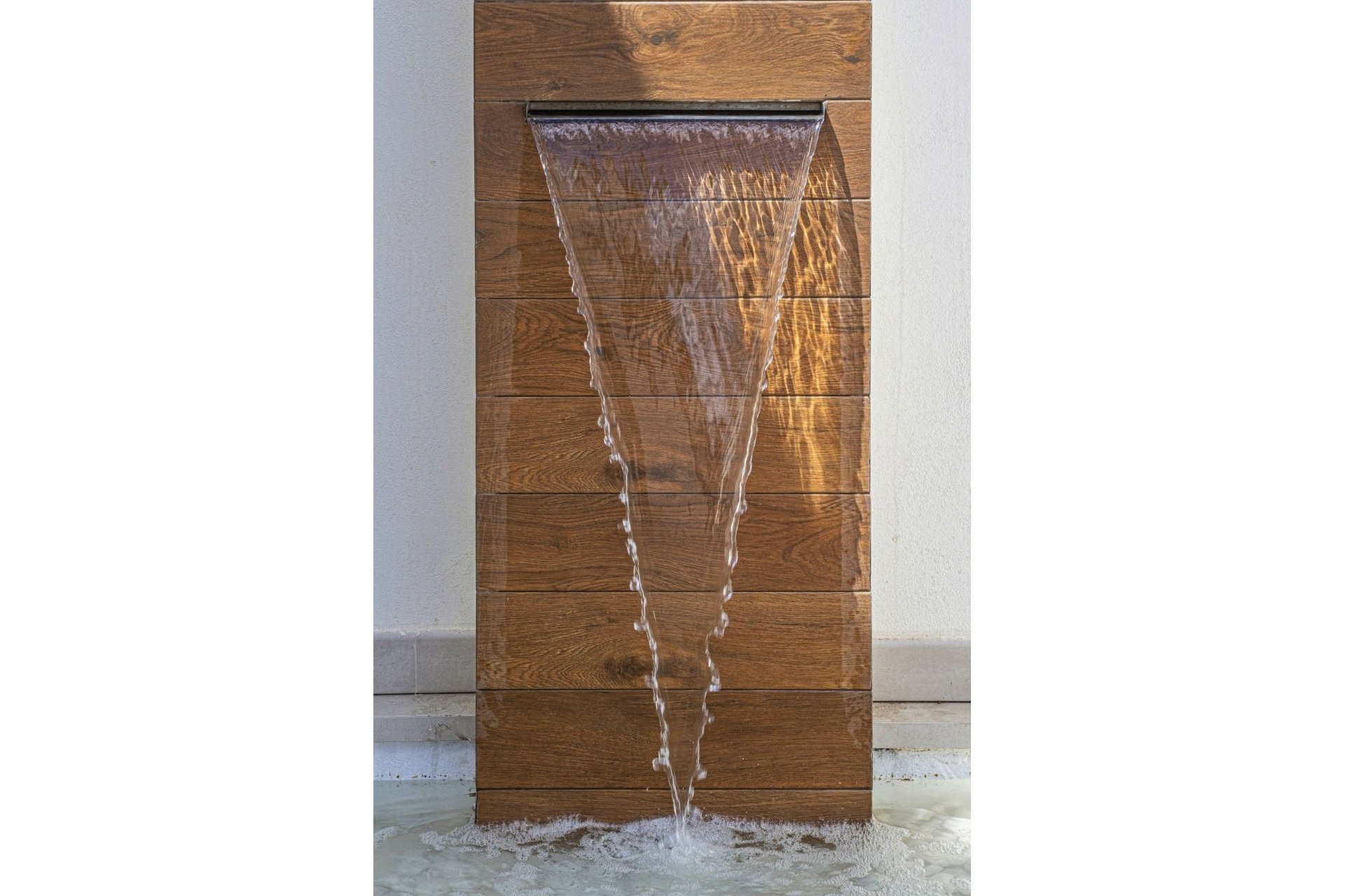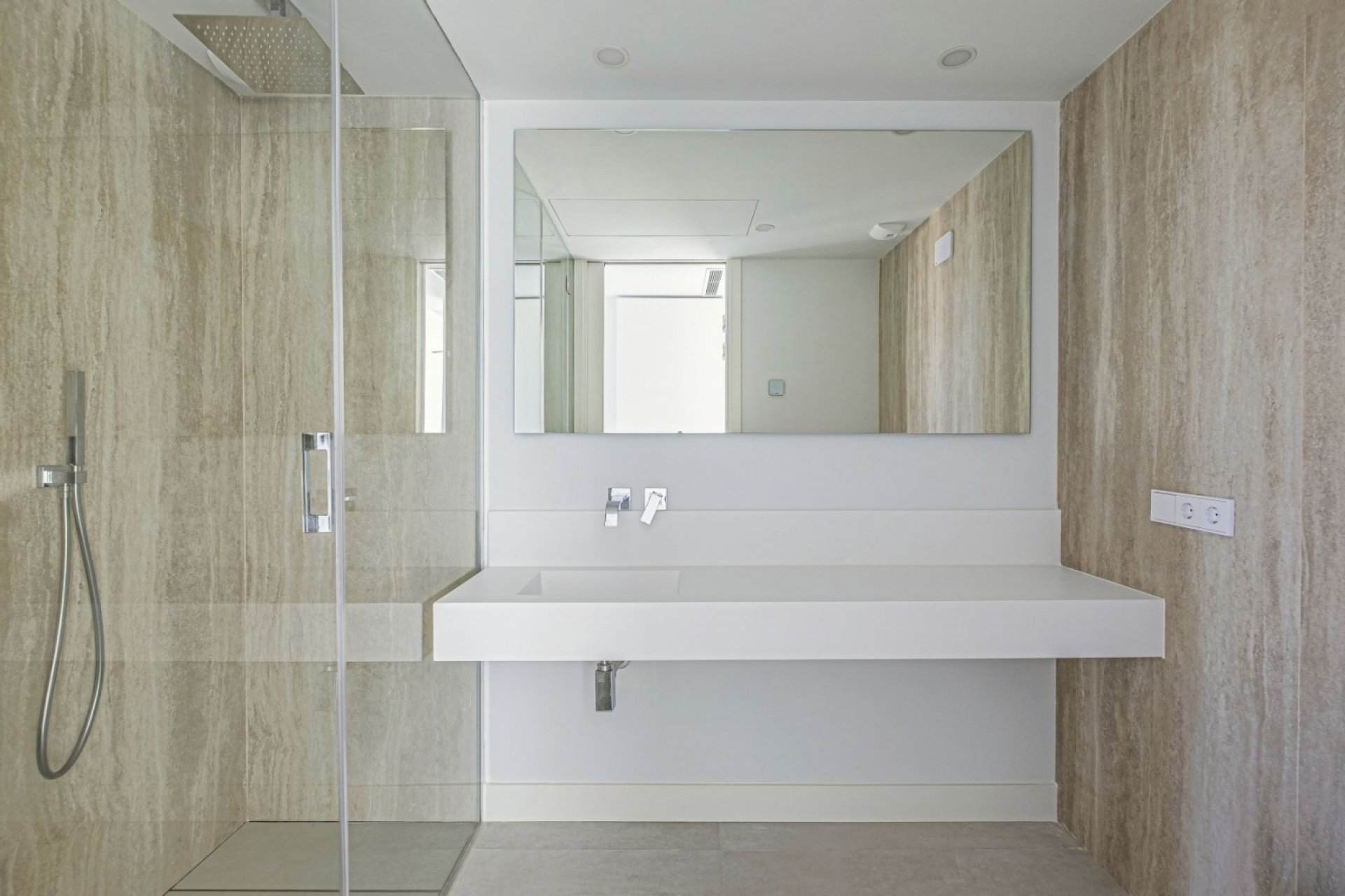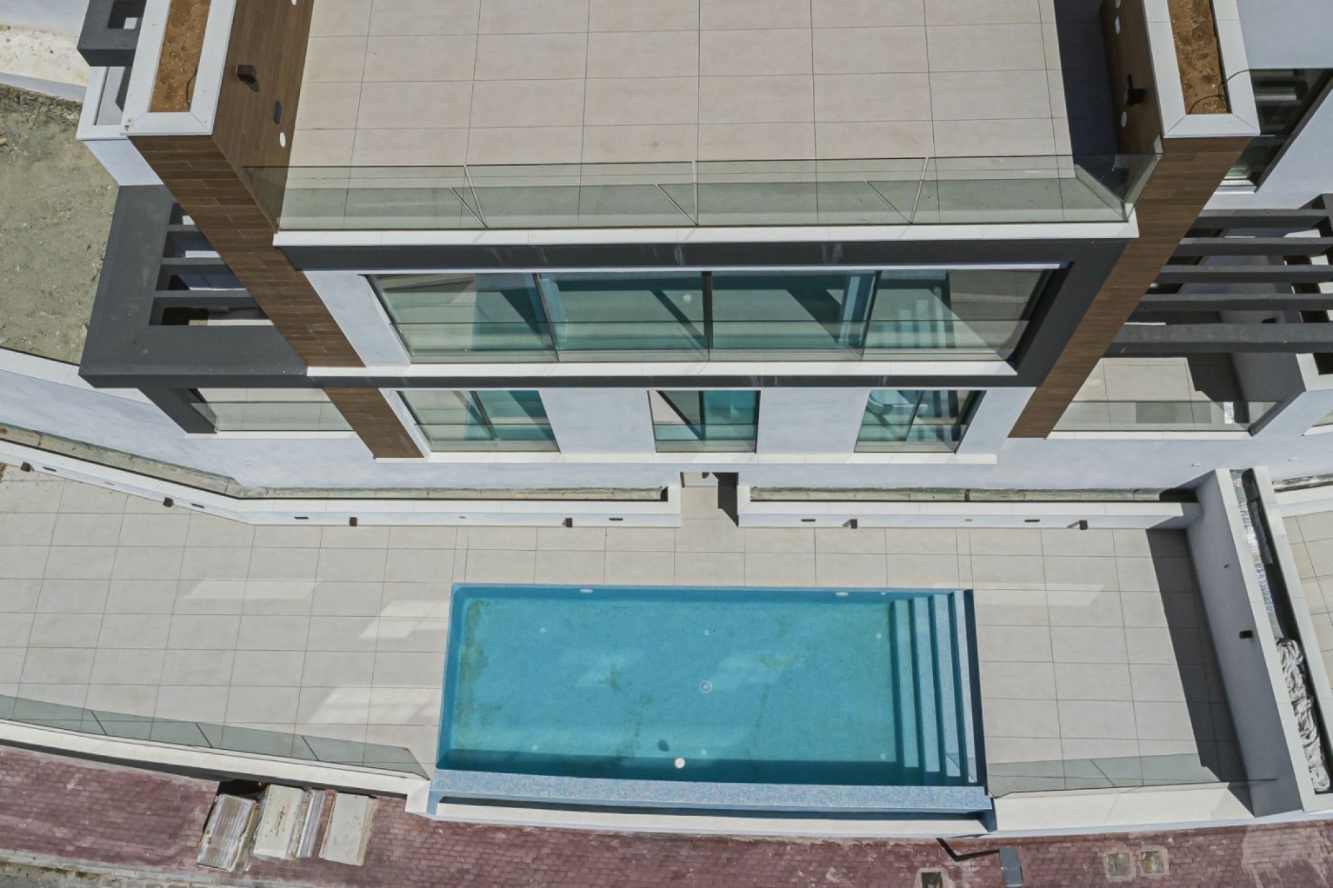 The exterior design of this villa stands out for its elegance and modernity, with spacious terraces on the ground floor and large balconies attached to each of the 3 bedrooms on the first floor. The roof terrace offers stunning panoramic views, ideal for relaxing and enjoying the surroundings. The secure landscaped garden provides a serene and private space, while the private swimming pool connects seamlessly with the villa, creating a harmonious ambience. The clean lines and high quality materials used on the exterior complement the avant-garde design of this property.