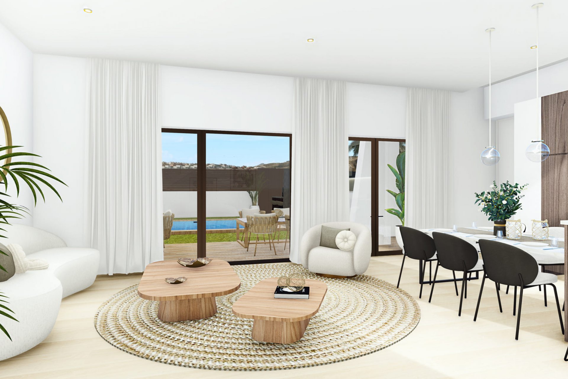 De woning is zorgvuldig ontworpen om de schoonheid van Sierra Cortina en de Middellandse Zee in elke hoek te vangen. Het Sunset model wordt gekenmerkt door grote ruimtes die naadloos op elkaar aansluiten, zowel binnen als buiten, waardoor een vloeiende en harmonieuze ervaring ontstaat. Licht speelt een fundamentele rol in het benadrukken en transformeren van architecturale perspectieven, waardoor elke ruimte een unieke en speciale essentie krijgt.