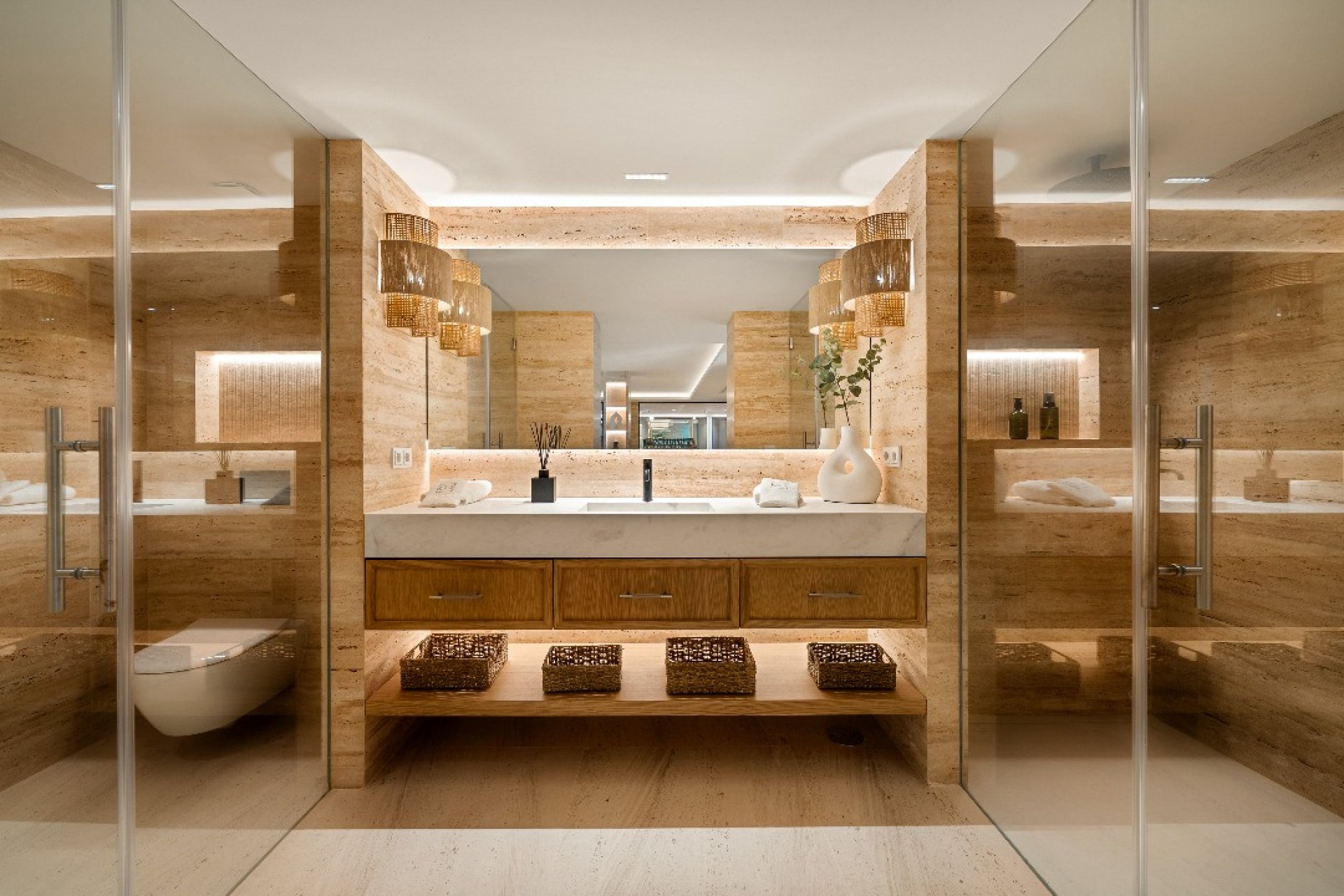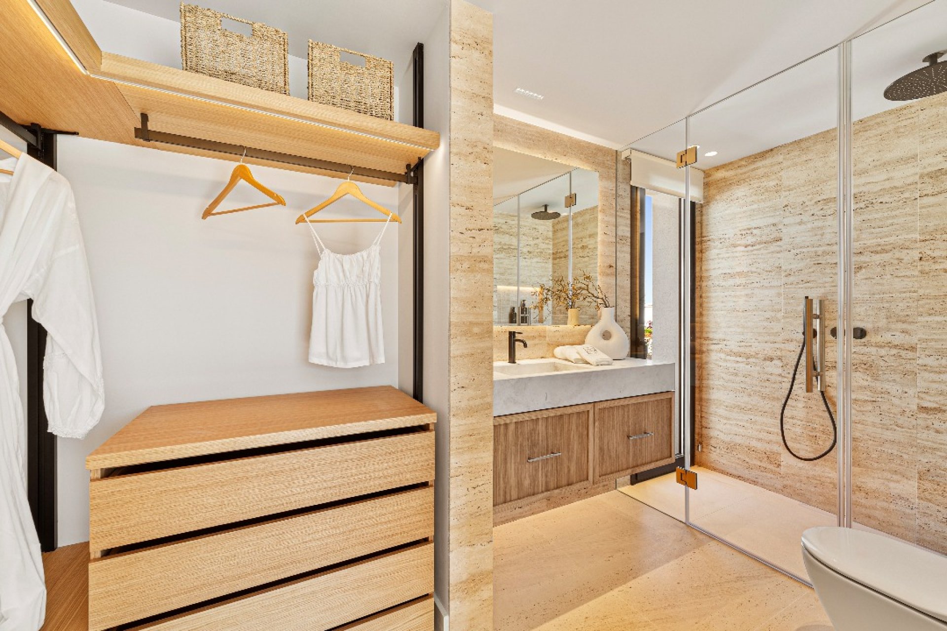 Het interieur is ontworpen met een verfijnde en tijdloze stijl. Neutrale tinten en natuurlijke materialen worden gecombineerd met houten details die warmte en persoonlijkheid toevoegen aan elke kamer. De villa heeft vijf ruime slaapkamers, evenals een imposant open concept woon-eetkamer die perfect aansluit op de keuken, ontworpen voor zowel het dagelijks leven als voor het ontvangen van gasten in een elegante en comfortabele sfeer.