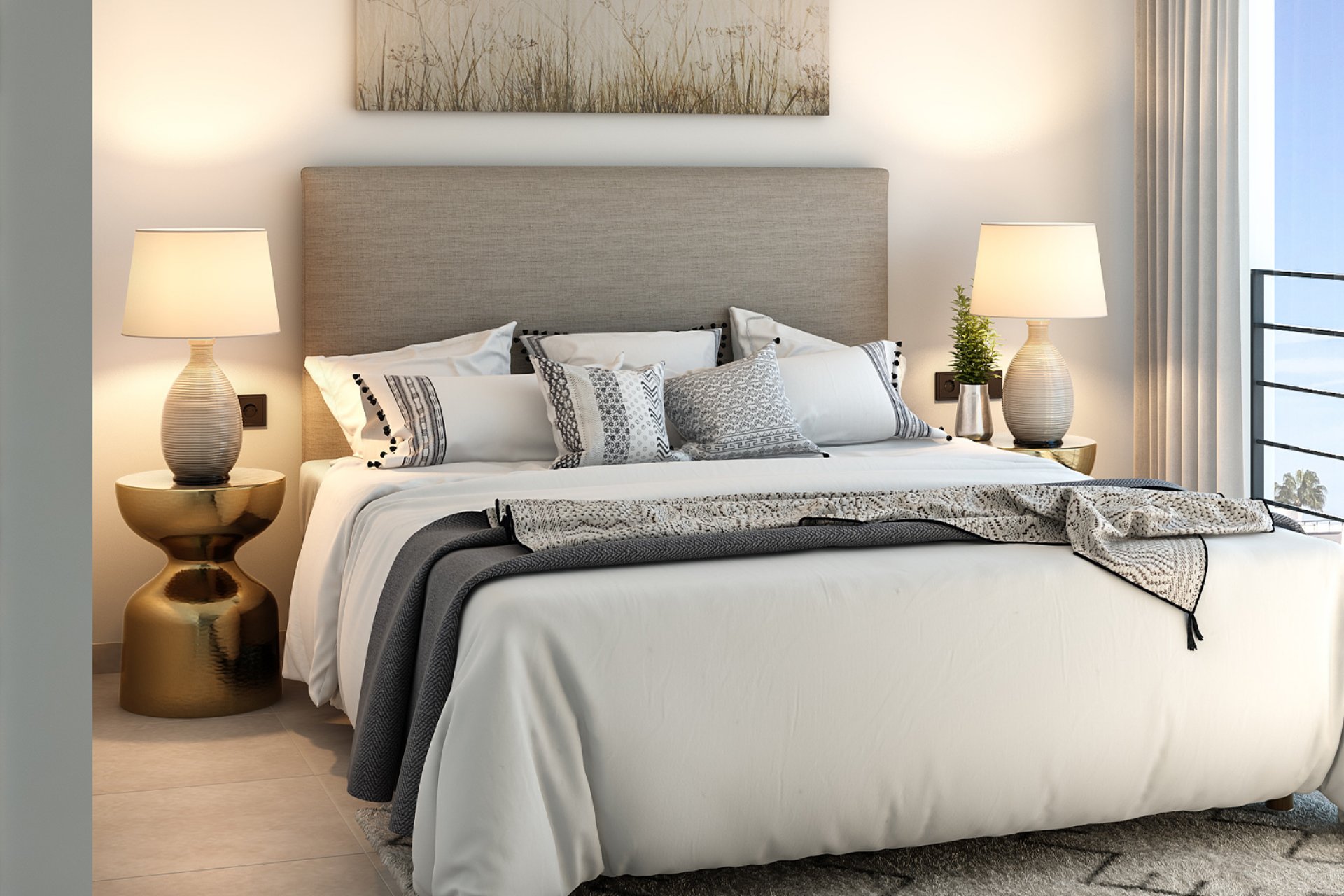 Het interieur van deze woningen is ontworpen met een focus op kwaliteit en comfort. De keramische vloeren, porseleinen tegels en laminaatvloeren geven elke ruimte een moderne en elegante uitstraling. De woningen zijn uitgerust met airconditioning, wat het hele jaar door een aangename sfeer garandeert. Moderne apparaten maken het dagelijks leven gemakkelijker, terwijl ingebouwde kasten efficiënte opslagoplossingen bieden. Technologie speelt ook een belangrijke rol, met video-intercoms en elektrische rolluiken die comfort en veiligheid toevoegen. Bovendien heeft elke woning een oplaadpunt voor elektrische auto's, wat een toewijding aan duurzaamheid en innovatie weerspiegelt.
