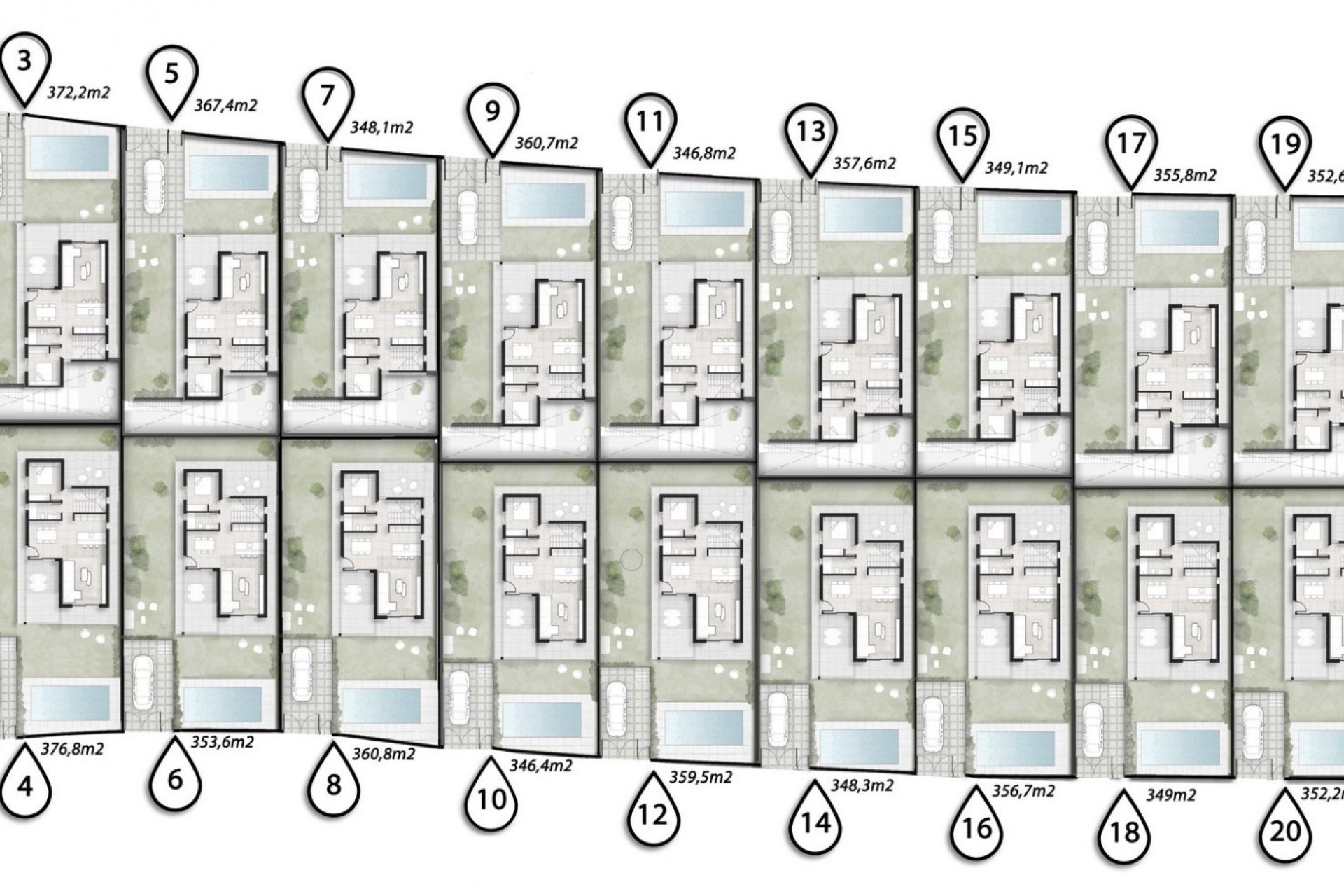 - Alle villa's hebben:- 3 tweepersoonsslaapkamers- 3 complete badkamers- Open keuken en een zonneterras.- Buitenruimte met een privézwembad.- Mogelijkheid om een verdiepte binnenplaats en een kelder toe te voegen- Keuze tussen zeezicht of uitzicht op de bergen- Alle villa's hebben een solarium en een zwembad van 7 x 3m- Oplevering 10-12 maanden- Prijzen van 549.000€ tot 679.000€