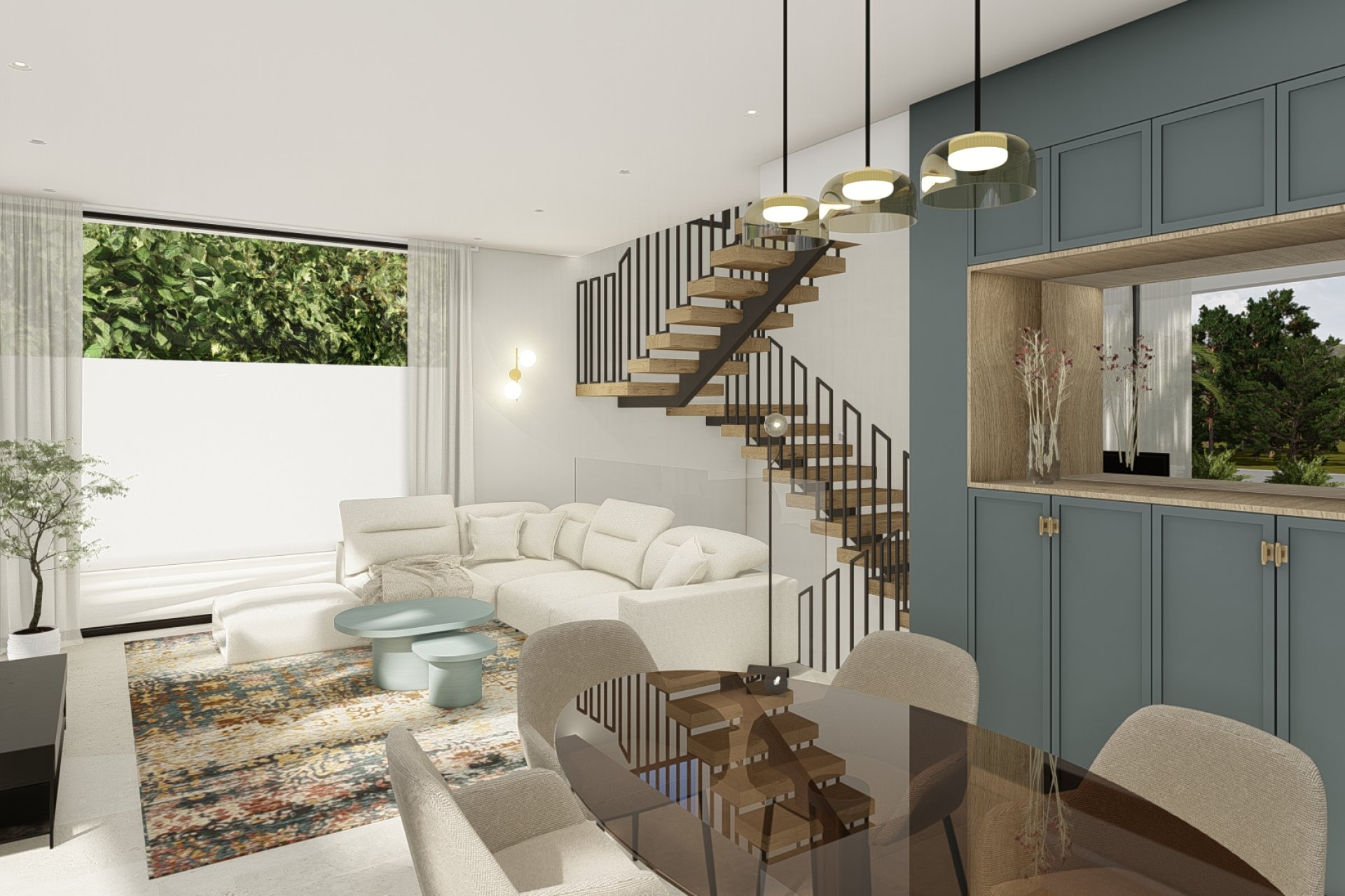 De interieurs van deze huizen zijn een getuigenis van elegantie en comfort. Lichte en goed ingedeelde ruimtes nodigen uit tot ontspanning en entertainment. Moderne en volledig uitgeruste keukens zijn het hart van het huis, terwijl de ruime woonkamers een gezellige sfeer bieden voor familiebijeenkomsten of sociale gelegenheden. De slaapkamers, elk met een eigen badkamer, bieden privacy en comfort. Ontwerpdetails, zoals afwerkingen van hoge kwaliteit en zorgvuldig geselecteerde materialen, voegen een vleugje luxe toe. Kortom, deze interieurs combineren functionaliteit en stijl om een echt gastvrije en verfijnde omgeving te creëren voor de bewoners.