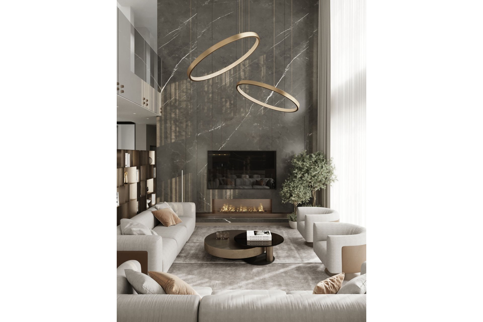 Het is ontworpen met de nadruk op ruimtelijkheid, licht en comfort, waarbij de ruimtes efficiënt zijn verdeeld om een ongeëvenaarde woonervaring te bieden. Het huis heeft zes luxe slaapkamers, allemaal met eigen badkamer, en zeven badkamers in totaal. De interieurs onderscheiden zich door hun hoogwaardige afwerking en het gebruik van materialen die harmonieus samengaan met de natuurlijke omgeving. De hoofdkeuken is volledig uitgerust met ultramoderne apparatuur, terwijl een extra keuken, ideaal voor personeel of catering, discrete ondersteuning biedt tijdens evenementen of familiebijeenkomsten. De belangrijkste woon- en eetkamer, met oversized ramen, zorgt voor natuurlijk licht in het interieur en biedt een spectaculair uitzicht op de zee en de bergen. Daarnaast heeft de villa een personeelsslaapkamer met en-suite badkamer, voor extra comfort en functionaliteit.