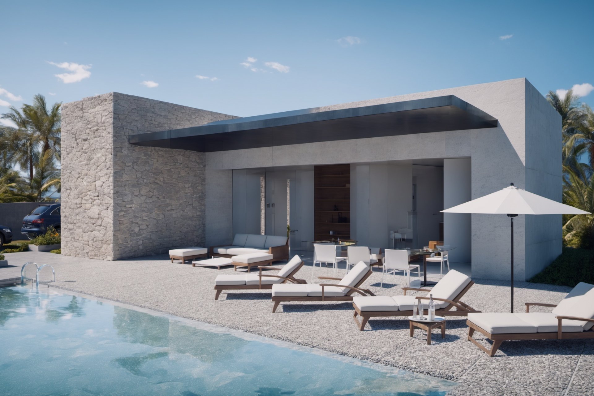 Het interieur van de villa's is ontworpen om comfort en functionaliteit te maximaliseren. De ruime woon-eetkamer, met grote ramen, laat veel natuurlijk licht binnen en biedt direct uitzicht op de tuin en het zwembad. De moderne en goed uitgeruste open keuken integreert perfect met de woonkamer en creëert een open en luchtige ruimte die ideaal is voor het dagelijks leven. De 3 tweepersoonsslaapkamers zijn voorzien van inbouwkasten, waardoor er voldoende bergruimte is. De hoofdslaapkamer heeft een en-suite badkamer, die privacy en comfort biedt. Alle drie de badkamers zijn afgewerkt met hoogwaardige materialen. Met een bebouwde oppervlakte van 178 m² en een woonoppervlakte van 160 m² is het interieur ontworpen om een luxe en moderne woonervaring te bieden.