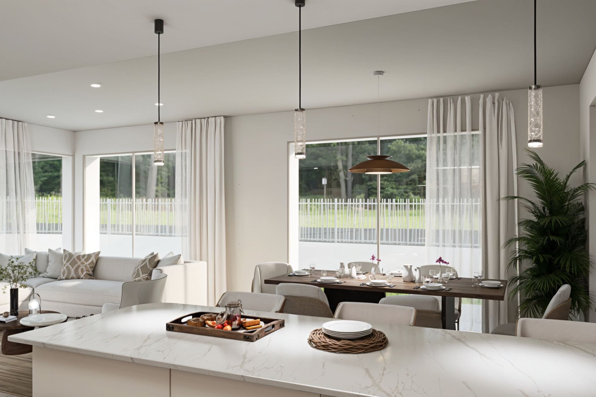 Het interieur van deze villa's is zorgvuldig ontworpen om het natuurlijke licht te maximaliseren en grote, open ruimtes te creëren. De woon-eetkamer heeft grote ramen die direct in verbinding staan met de tuin, wat het gevoel van ruimte versterkt. De keuken, volledig uitgerust met topapparatuur, sluit naadloos aan op de rest van het huis, ideaal voor wie houdt van het open keukenconcept. De slaapkamers zijn ruim en gezellig, met ingebouwde kasten, terwijl de badkamers zijn uitgerust met vloerverwarming en luxe afwerking, voor maximaal comfort.