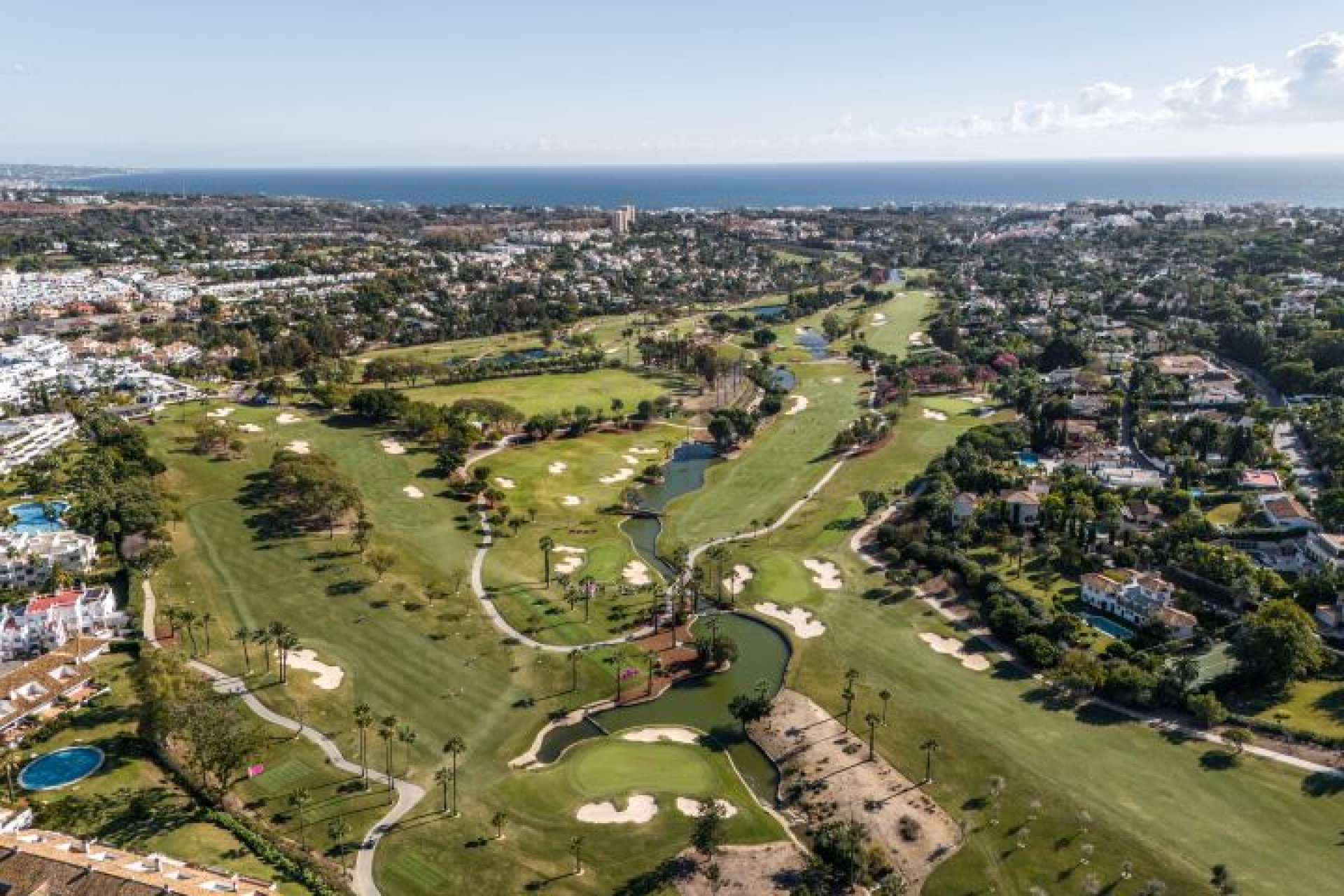 De buitenkant van de villa wordt benadrukt door de zorgvuldig onderhouden privétuin, die een verwarmd zwembad en een chill-outgedeelte omringt, perfect om te ontspannen en te genieten van het mediterrane klimaat. De villa heeft ook ruime terrassen, zowel op de bovenverdieping als op het dakterras, die een 360 graden panoramisch uitzicht bieden op de golfbaan van Las Brisas en de omliggende bergen. Het dakterras heeft een jacuzzi en een barbecueplaats, ideaal voor entertainment in de buitenlucht.