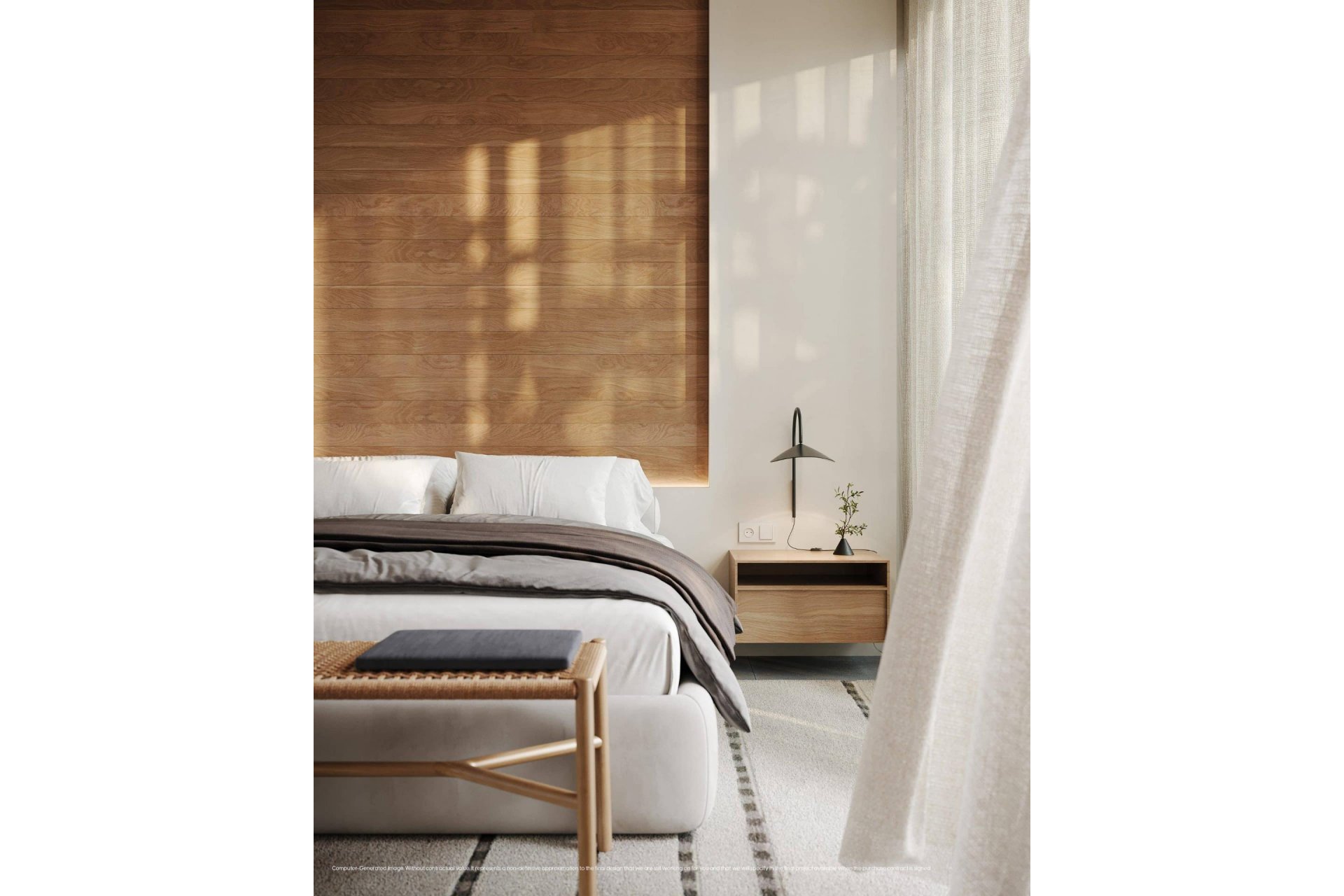 Materialen zoals natuurlijk hout zijn gebruikt in geselecteerde delen van de gevelbekleding van de villa, waardoor een constante dialoog met het natuurlijke landschap eromheen mogelijk is en het project ontegenzeggelijk de uniciteit, elegantie en zuiverheid krijgt die New Build villa's kenmerken.