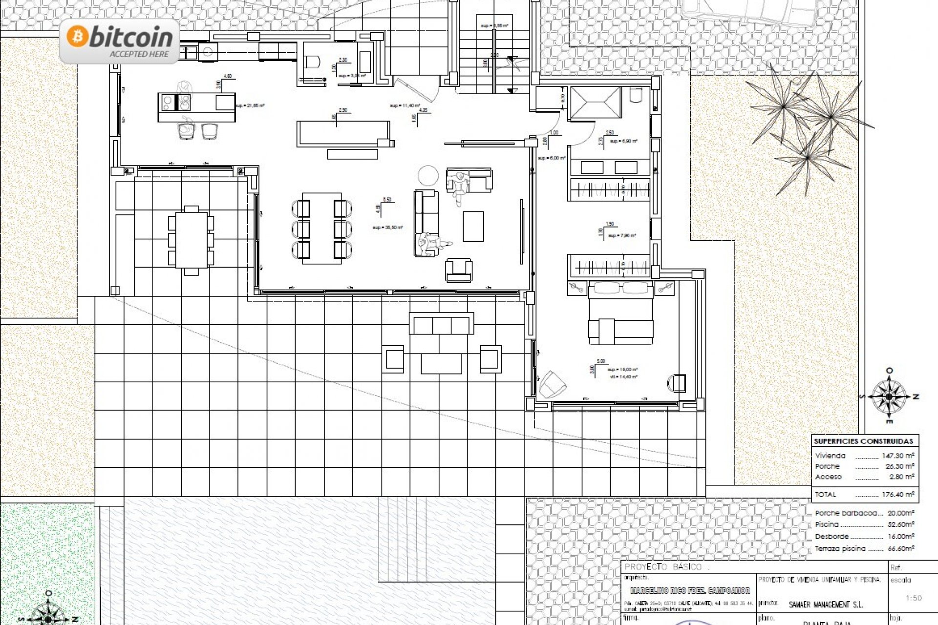 BEGANE GROND (147.30m²): Ruime lichte woonkamer naast de open keuken met kookeiland, een gastentoilet en een slaapkamer met en-suite badkamer. Buiten vinden we het oogverblindende overloopzwembad, omgeven door een ruim terras en een barbecue.